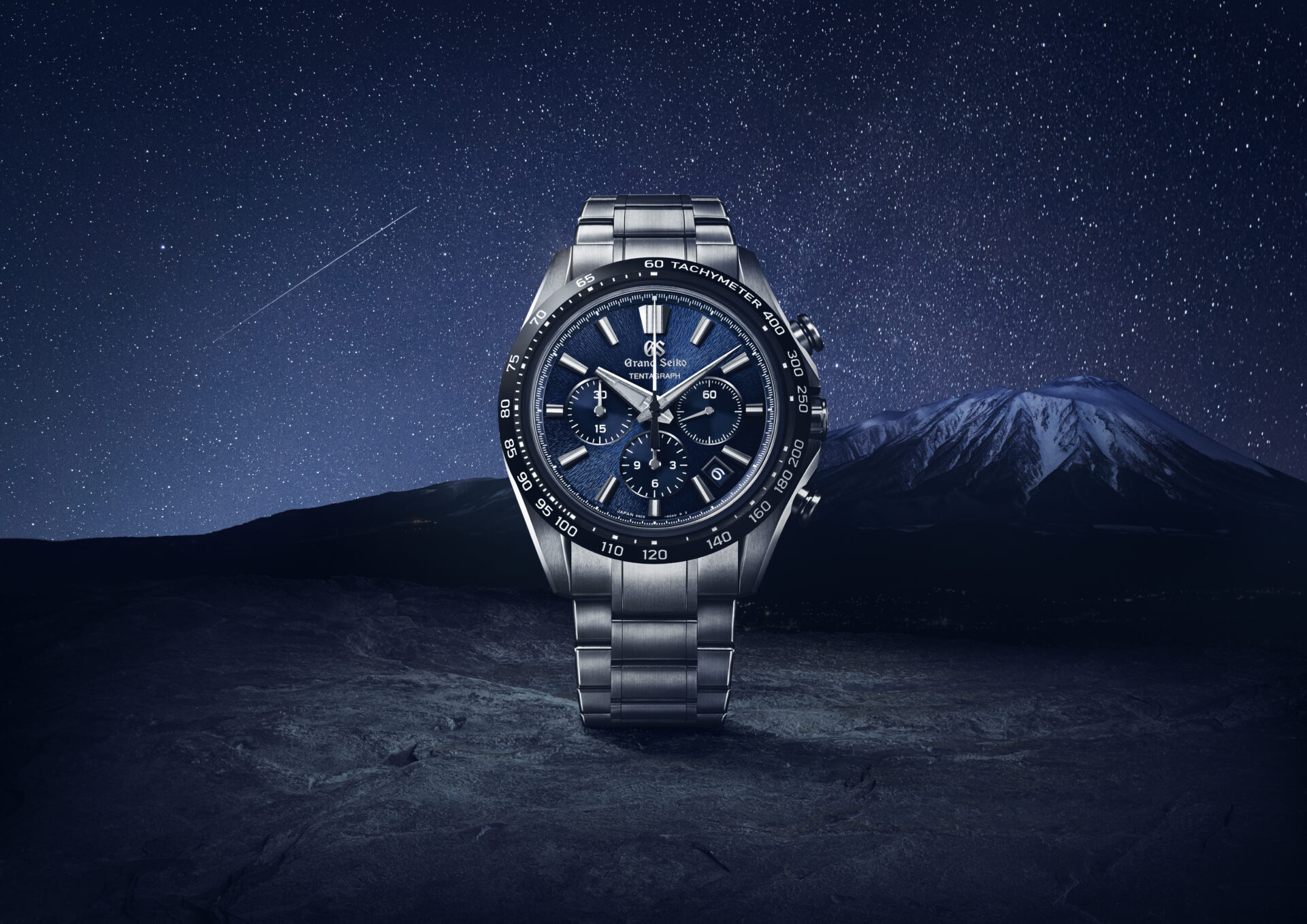 堅牢で軽量なブライトチタン製のケースとバンド、セラミックス製のベゼルが陰影を美しくまとい、「グランドセイコースタジオ 雫石」から望む雄大な岩手山の山肌を表現した「岩手山パターン」のダイヤルと相まって、豊かな光の表情を導き出します。